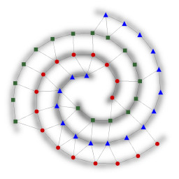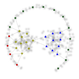 One approach to discover structure in data is the use of methods that employ forms of unsupervised competitive learning. The growing neural gas (GNG) proposed by Fritzke [7] is such a method. It belongs to the class of topology representing networks [8]. In contrast to other methods of unsupervised competitive learning, e.g., the self-organizing map (SOM) [9], the GNG does not use a fixed network topology. Instead, the GNG uses a data-driven growth process to approximate the topology of the input space in form of an induced Delaunay triangulation. However, the individual GNG units can only represent local regions of the input space as convex polyhedrons. Hence, complex structures of the input space, e.g., non-convex clusters, can only be approximated piecewise by a larger number of units.